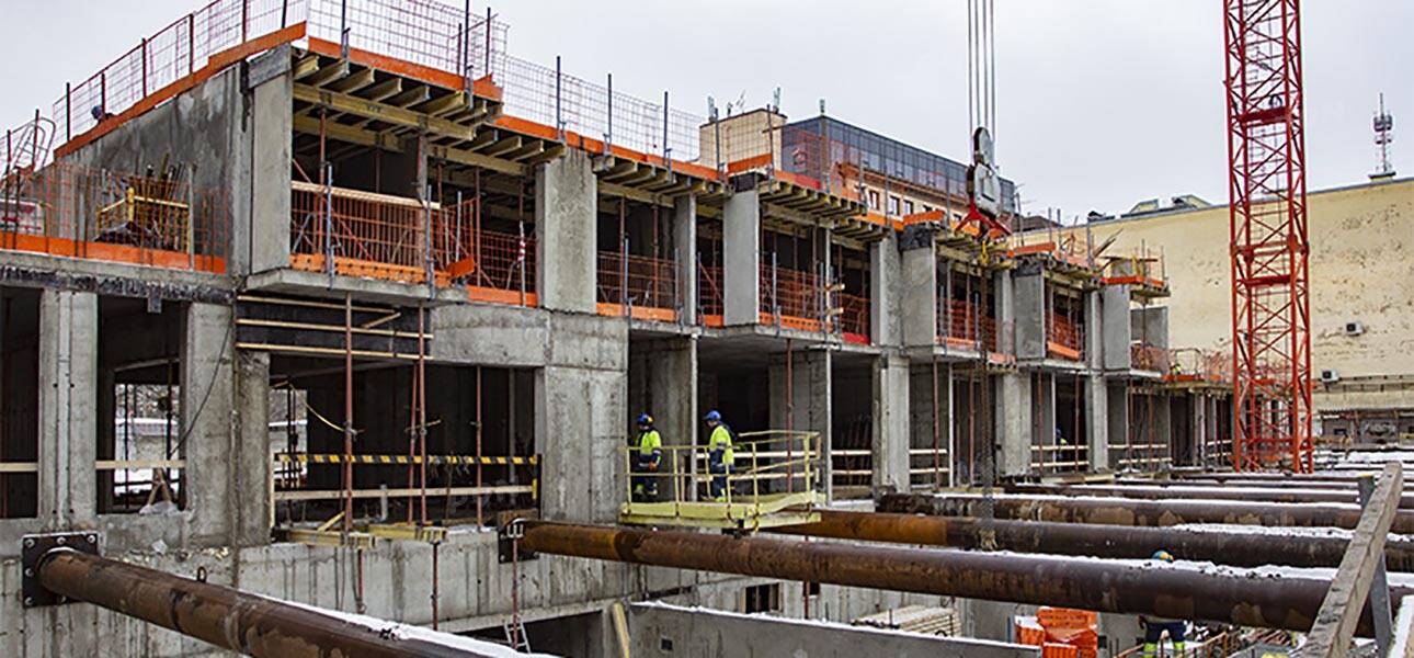 При строительстве подземной парковки и фундаментов здания использовались высокопрочные материалы с соблюдением СНиП.